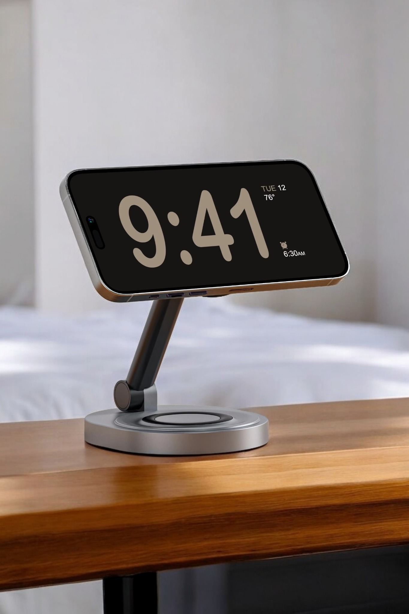Whether you’re watching a movie, chatting, or simply charging overnight, this stand adapts to your needs. It's 360° rotatable design allows you to adjust it for horizontal or vertical use. It’s perfect for your desk, bedside, or even the dining table. Convenience has never looked this good!