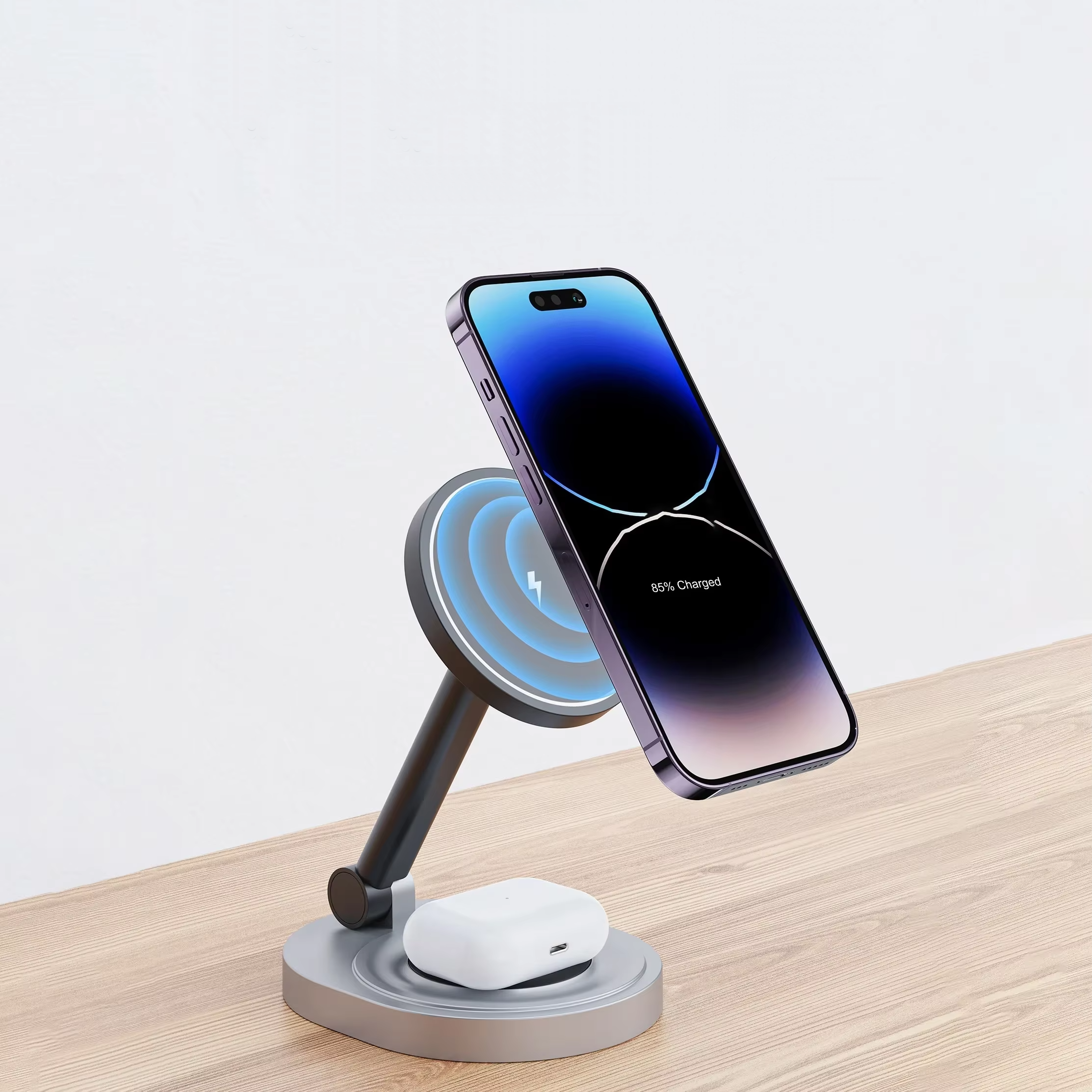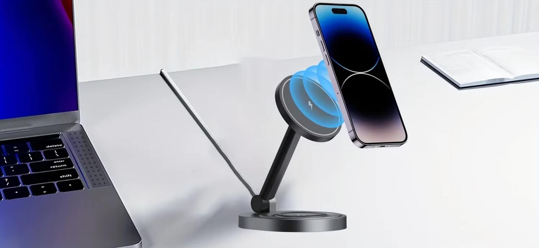 Order NowTired of cluttered cables taking over your desk? The 2-in-1 Magnetic Wireless Charger Stand is the perfect solution for charging your iPhone and AirPods simultaneously. Keep your workspace tidy and organised while enjoying a seamless, wire-free charging experience.